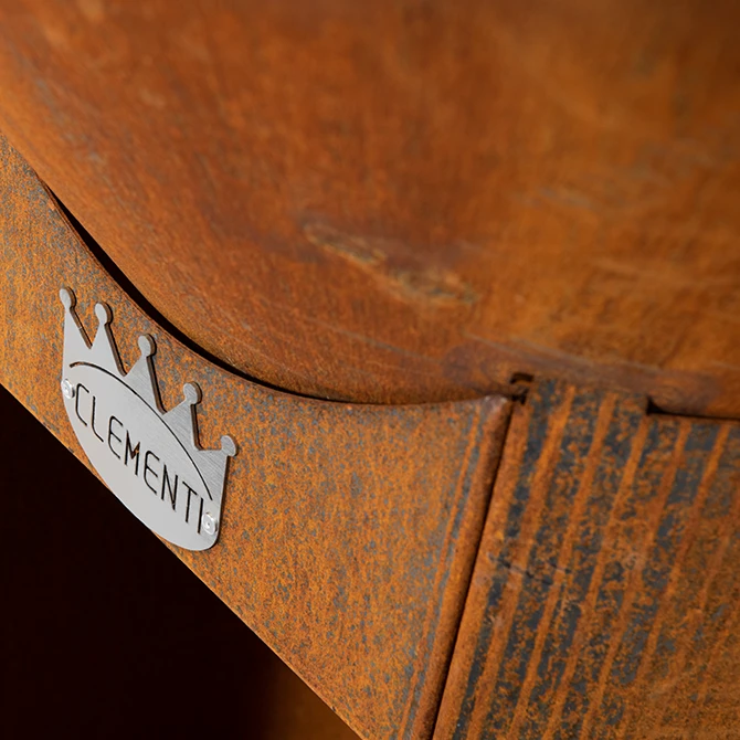Tutti i barbecue Clementi sono realizzati in acciaio corten. Il corten è un materiale sostenibile per la sua durabilità e limitata manutenzione.