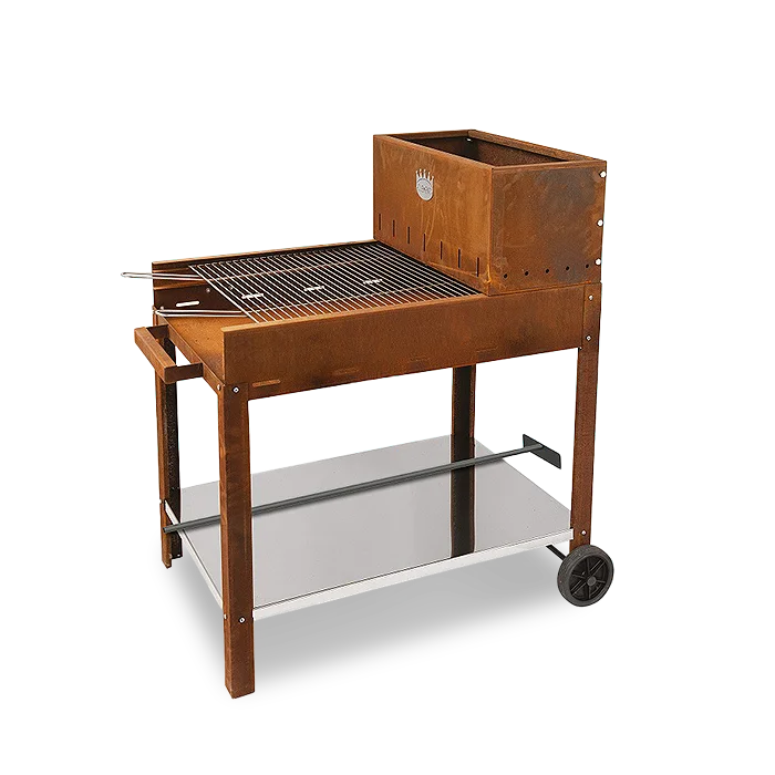 Il barbecue a legna realizzato in acciaio corten per gli appassionati di grigliate che desiderano un prodotto di alta qualità e facile da usare.